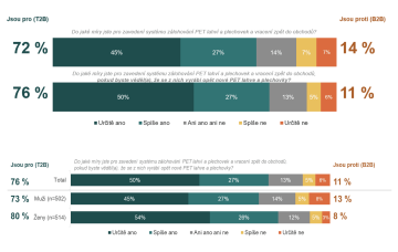 Tři čtvrtiny Čechů podporují zavedení systému záloh na PET lahve a plechovky. Potvrdil to lednový průzkum společnosti Ipsos. Na systému záloh oceňují především zajištění recyklace zálohovaných obalů do nových PET lahví a plechovek.