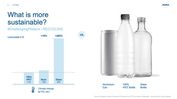 Fakt: PET je lehký a má nižší uhlíkovou stopu než sklo nebo kov. Například výroba jednorázové skleněné lahve způsobuje třikrát vyšší emise CO2 než výroba PET lahve ze 100% recyklovaného materiálu. Tyto informace potvrzuje i LCA (Lifecycle analysis), která hodnotí udržitelnost obalů během celého jejich životního cyklu.